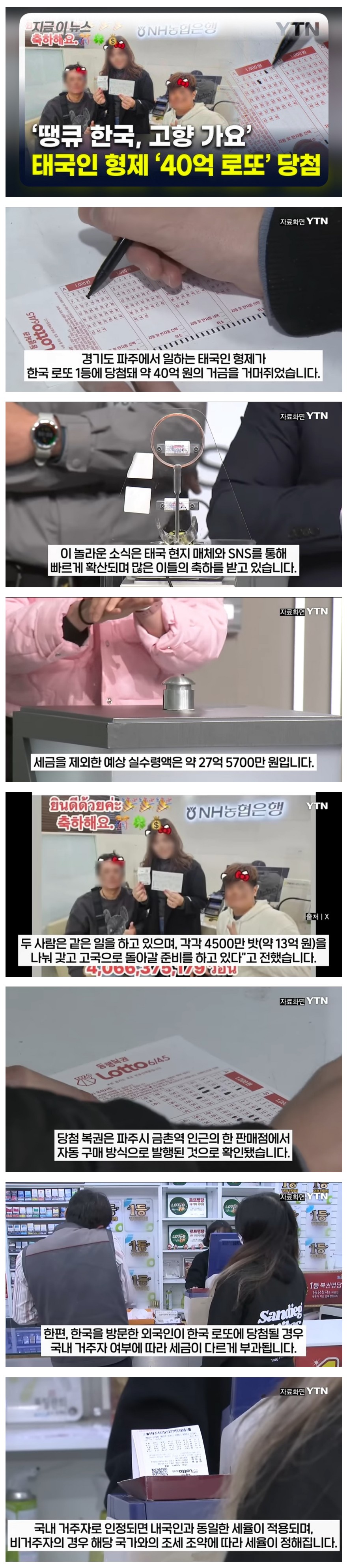 | Subject | 로또 1등 당첨 태국인 외노자 형제 “땡큐 한국”…JPG |