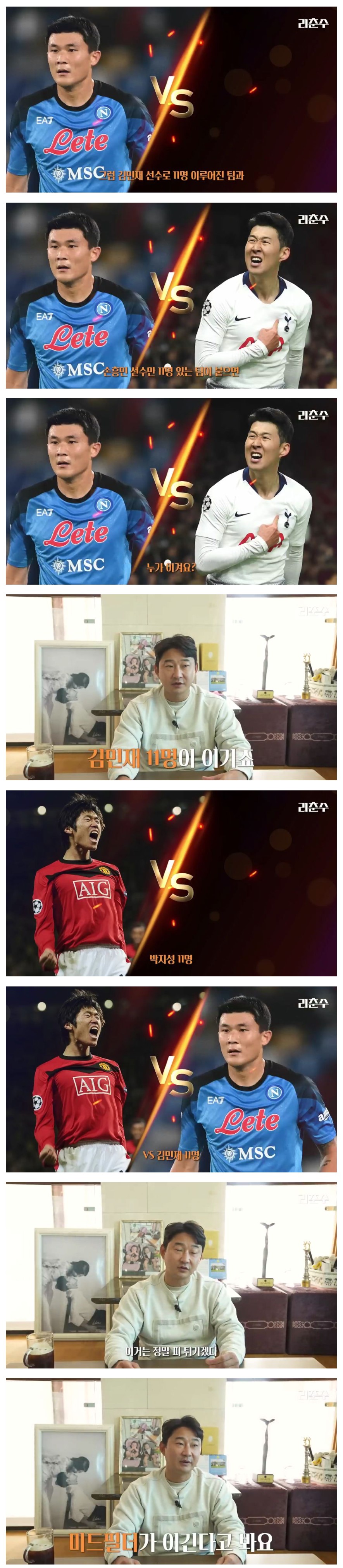 손흥민 11명 vs 박지성 11명 vs 김민재 11명