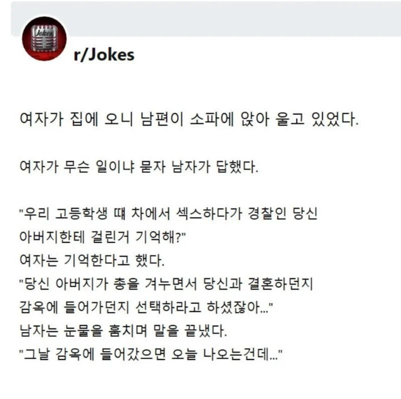 | Subject | 집에 오니 남편이 울고 있었다 |