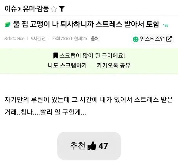 68215 울 집 고양이 나 퇴사하니까 스트레스 받아서 토함 .jpg 2 매뉴물있뉴 25/03/28 2810 1