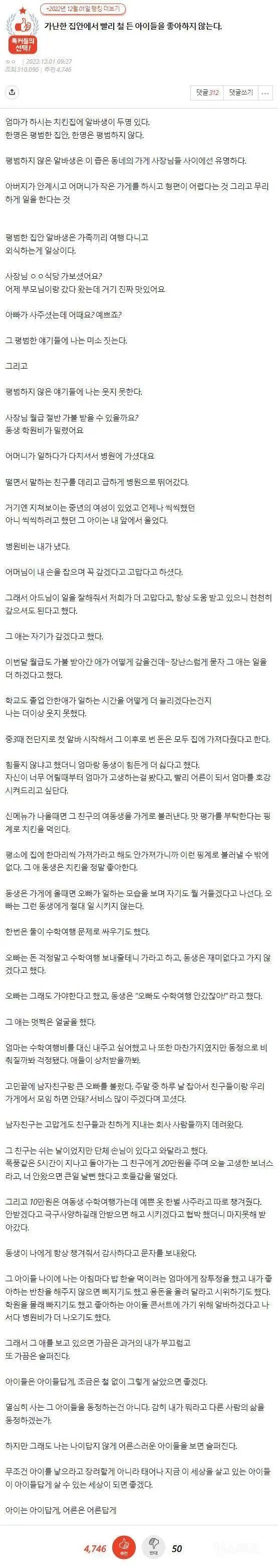 68309 가난한 집안에서 빨리 철 든 아이들을 좋아하지 않는다 6 swear 25/04/07 3075 7