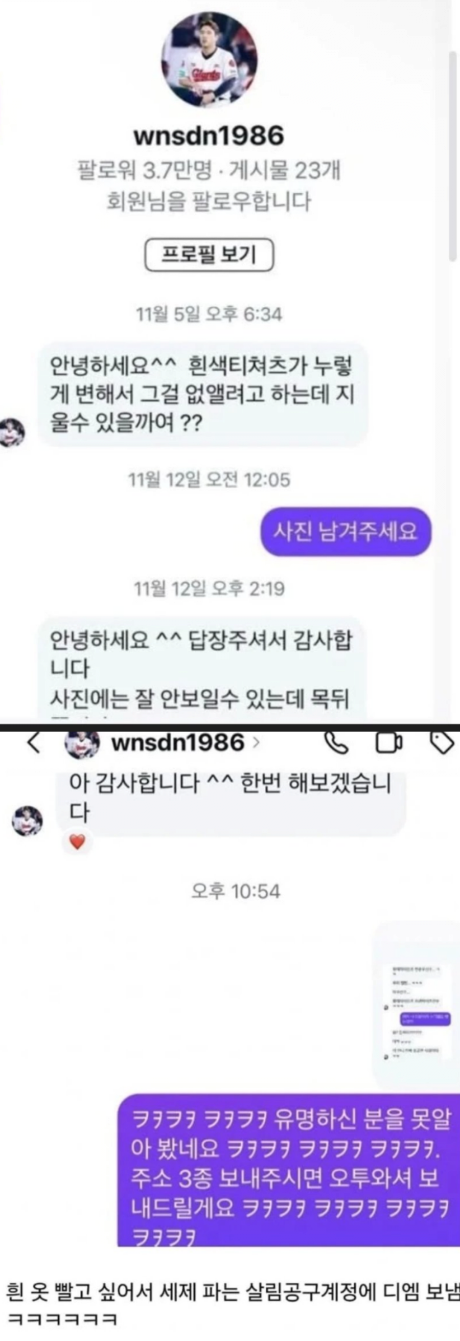 | Subject | 일반인에게 DM 보냈던 유부남 야구선수 |