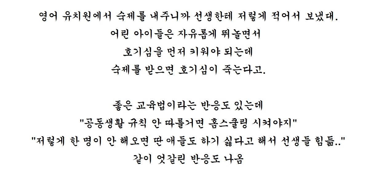 영어유치원은 애초에 그런 목적이 아닌 곳인데 그럼 일반 유치원에 보내는게 맞지 않나 싶은데요..
