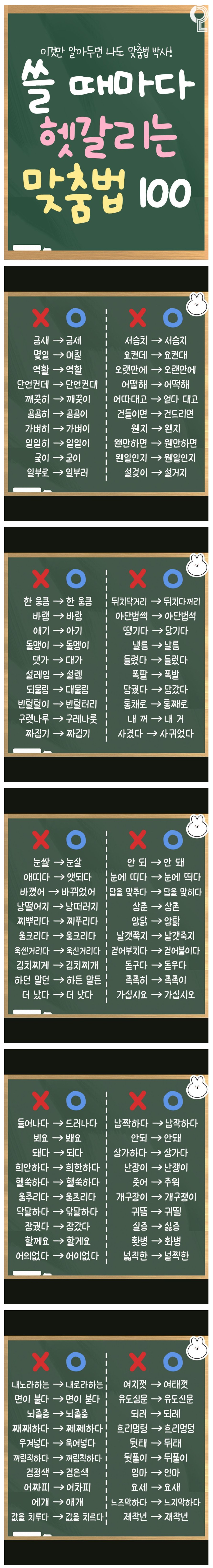 | Subject | 쓸 때마다 헷갈리는 맞춤법 100 |