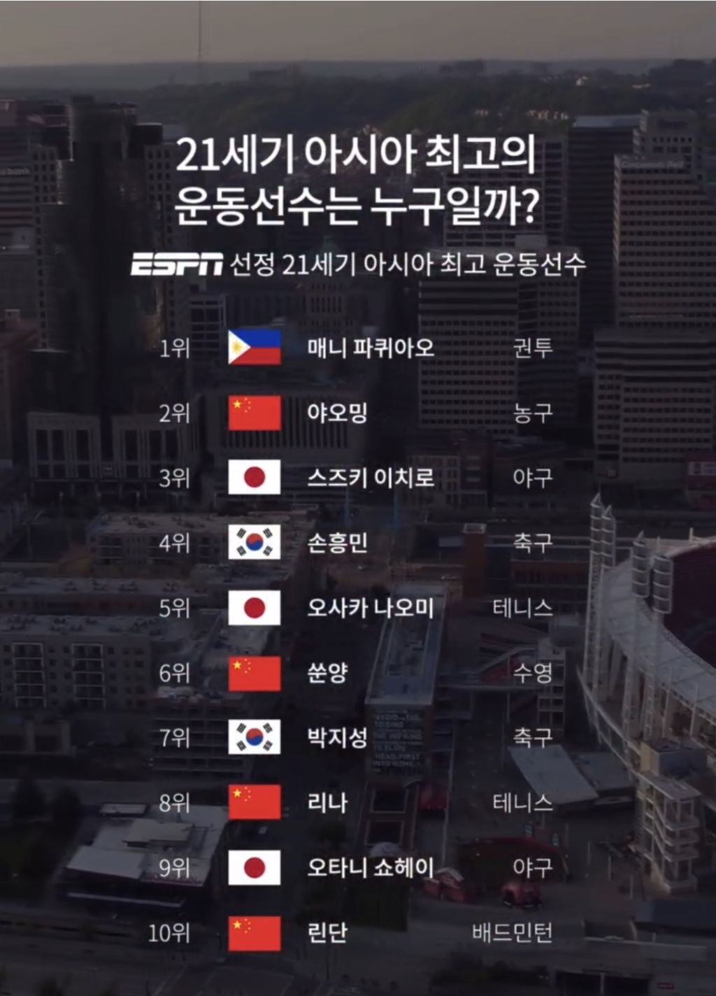 69515 ESPN 선정 21세기 아시아 운동선수 Top 10 5 김치찌개 25/08/30 1177 0