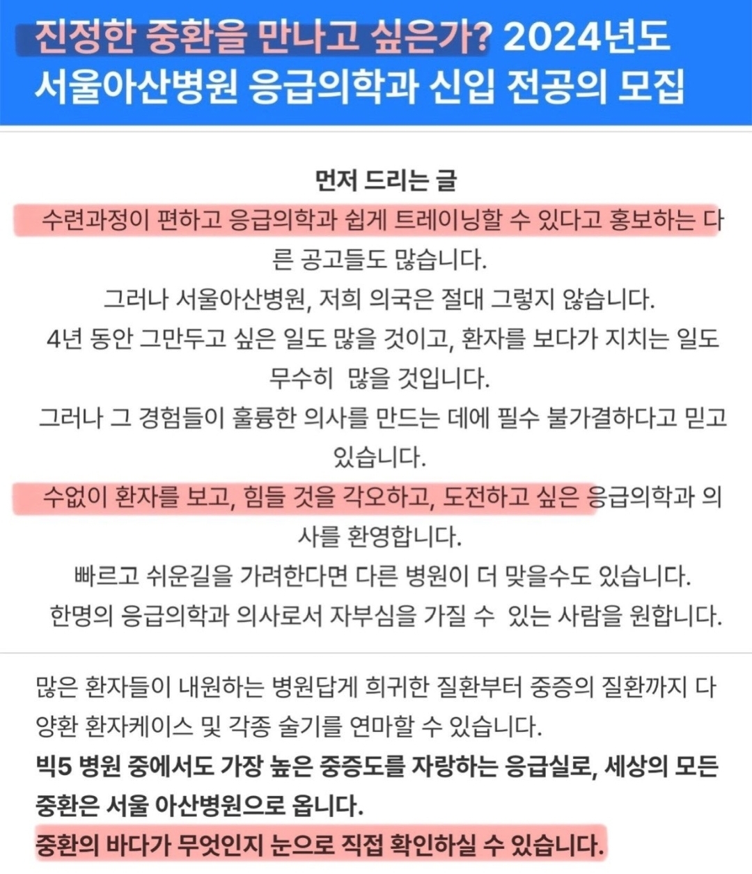 | Subject | 광기 그 자체인 아산병원 응급의학과 전공의 모집 |