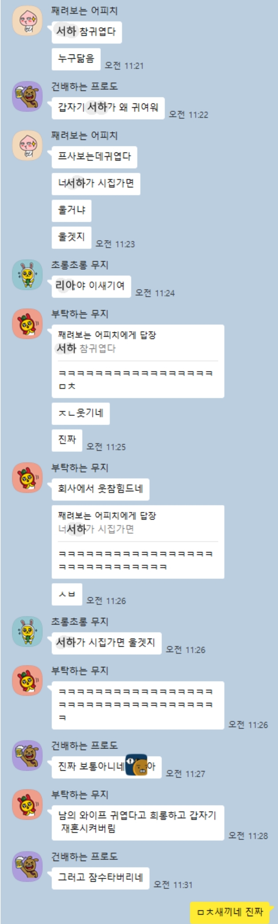 | Subject | 친구 : 너 와이프 진짜 귀엽다 |