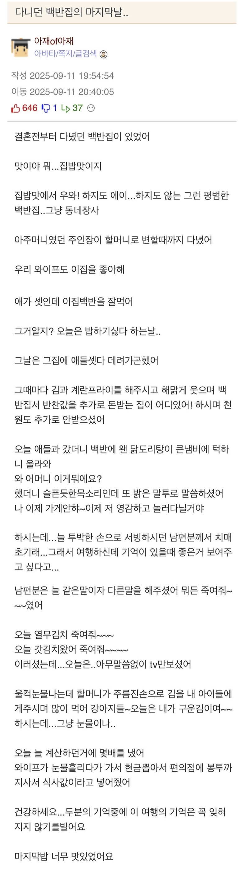 69646 다니던 백반집의 마지막날 3 swear 25/09/22 1261 0