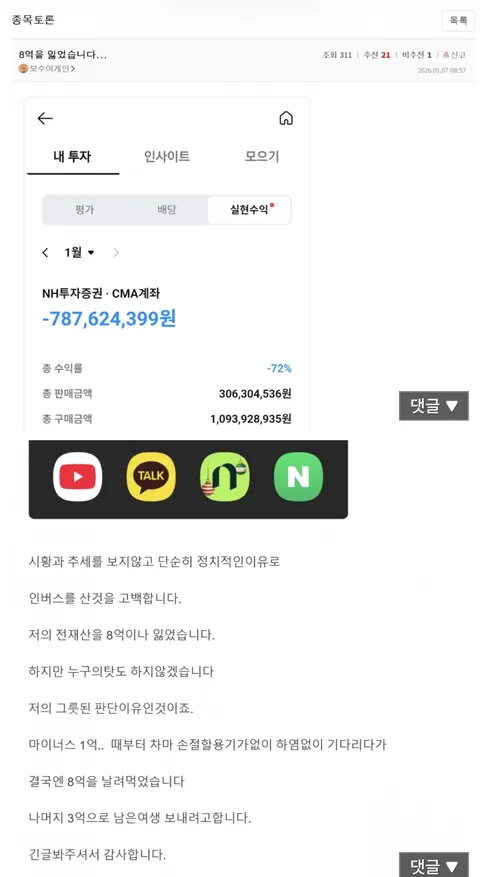 70477 8억을 잃었습니다. 4 활활태워라 26/01/11 1452 0