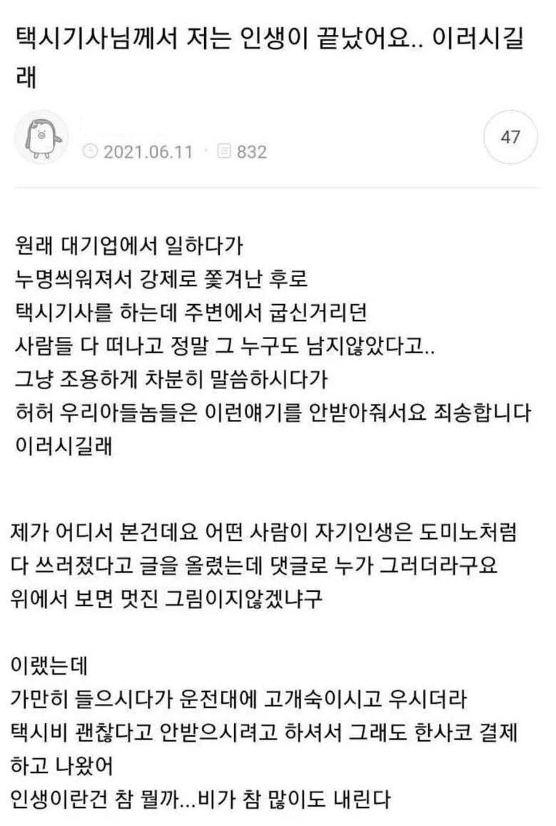 Subject   인생 끝났다는 택시 기사님.jpg