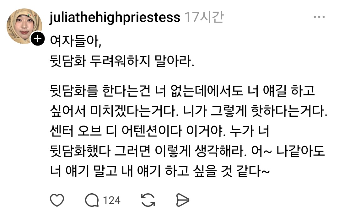 Subject   뒷담 당하는 걸 두려워말라(??)