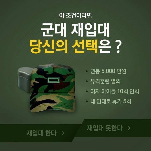 | Subject | 이 조건이면 재입대 한다 vs 안한다 |