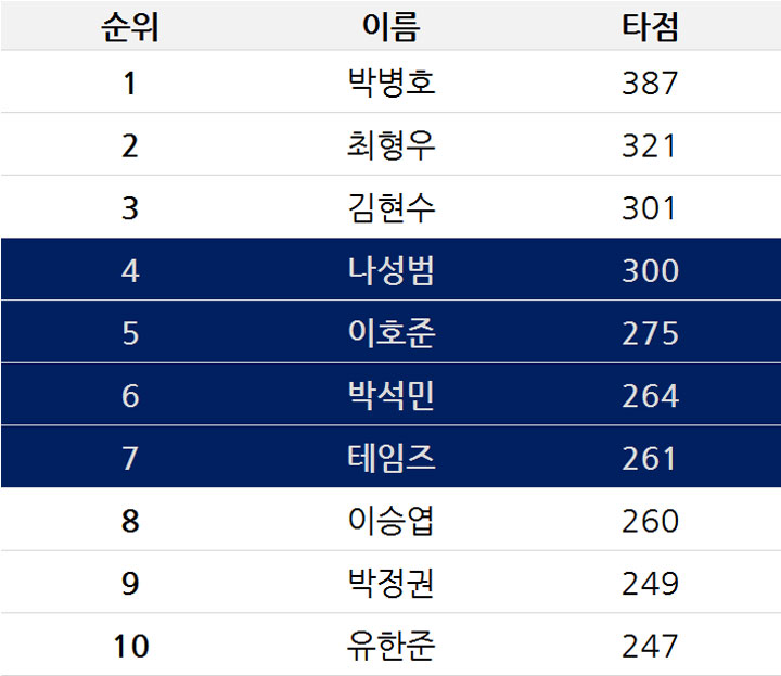 3년간 기록중에 끼어있는 2년 기록... 그리고 한 팀에 국내 잔류 선수들중 2~5위가 몰려있는 현실... 0
