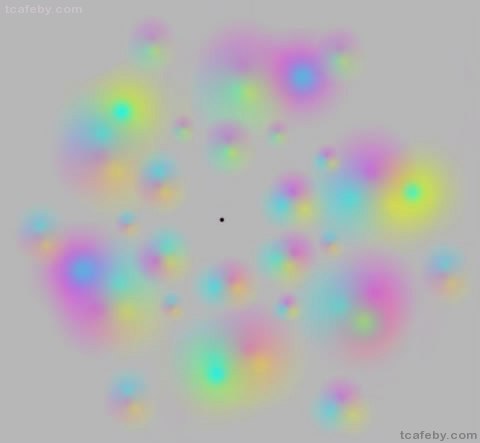그림 가운데 검은 점을 집중해서 노려보면 주변의 얼룩이 사라짐.