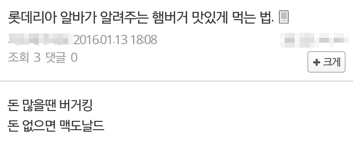 | Subject | 롯데리아 알바가 알려주는 햄버거 맛있게 먹는법 |