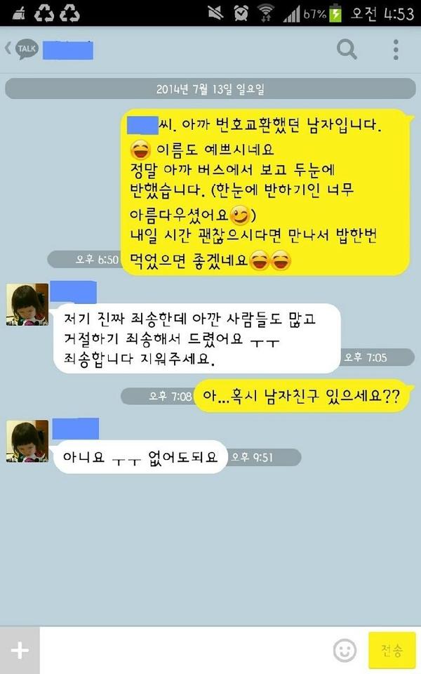 Subject   여자에게 번호받고 첫 연락^^