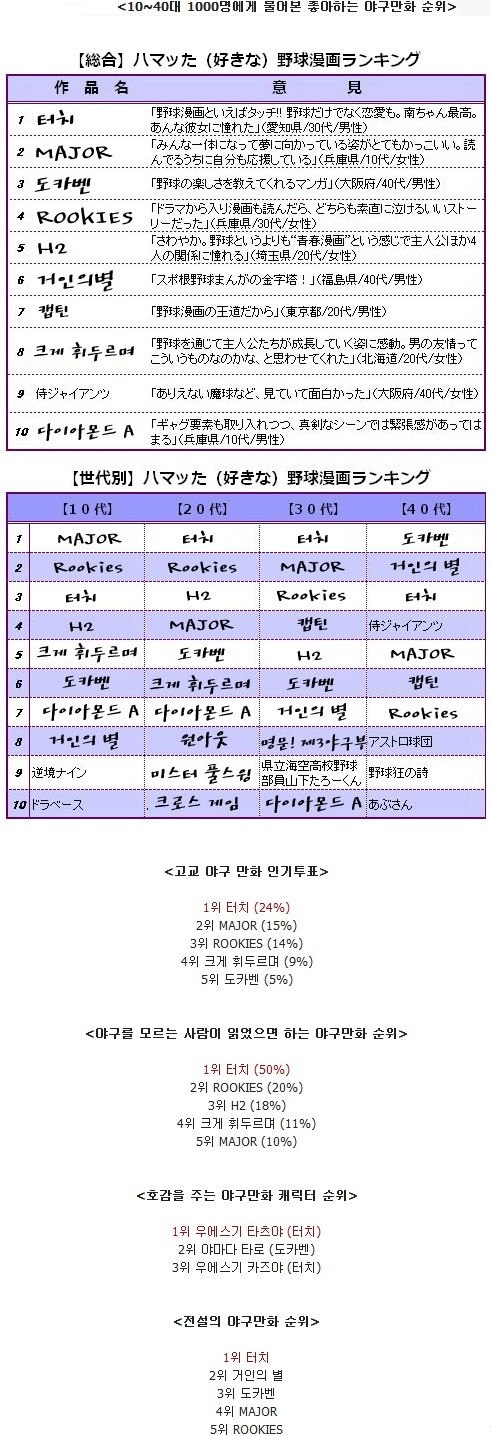 | Subject | 일본인들이 뽑은 야구만화 순위 |