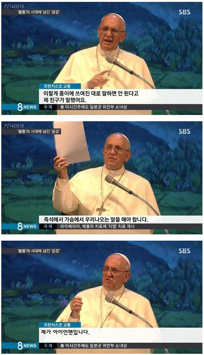 | Subject | 가슴에서 우러나오는 교황님의 말씀 |