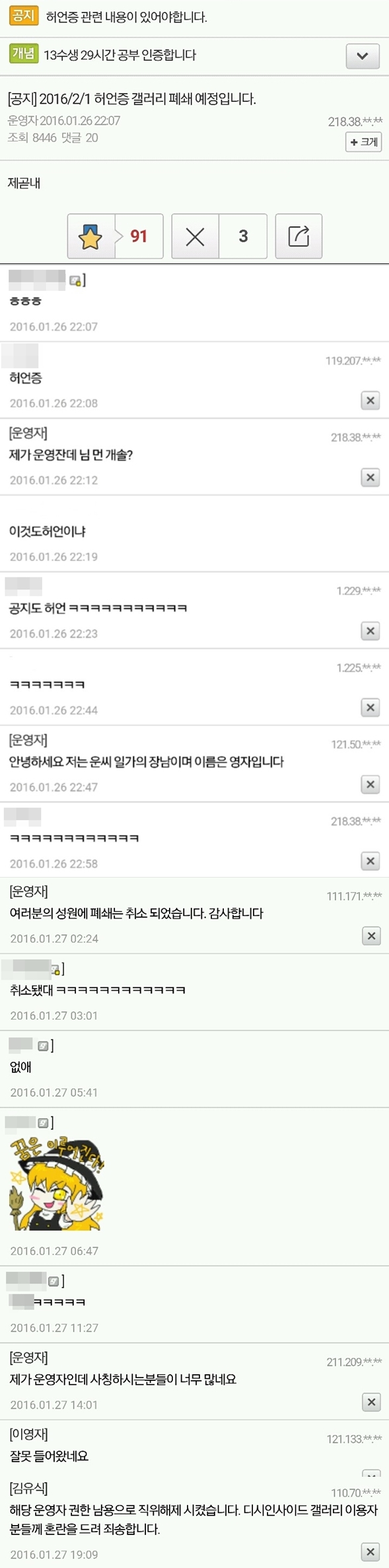 | Subject | 허언증 갤러리 폐쇄 공지 |