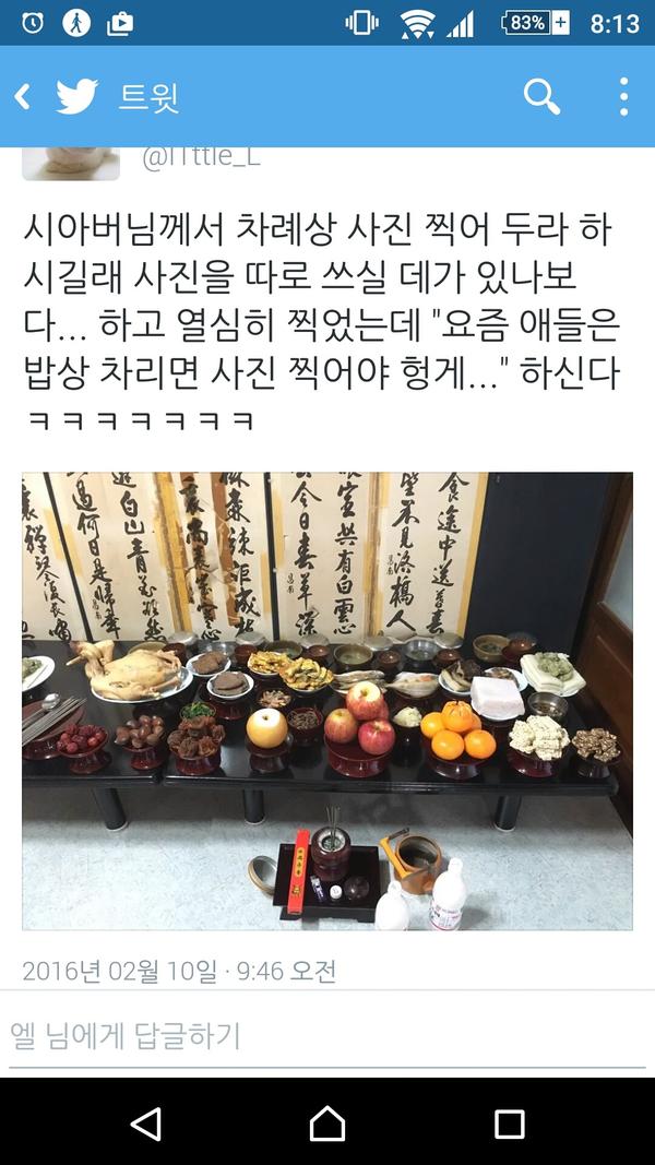 8908 요즘 애들은 밥상 차리면 사진 찍어야 된다더만.. 5 수박이두통에게보린 16/02/15 3207 0