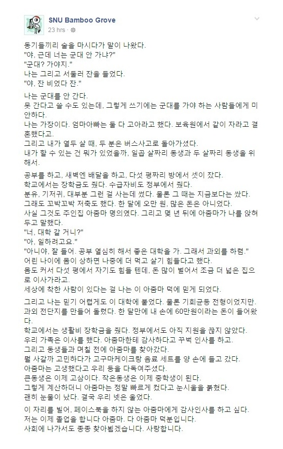 | Subject | 서울대학교 대나무숲 한 시간만에 좋아요 만개 넘은 글.jpg |