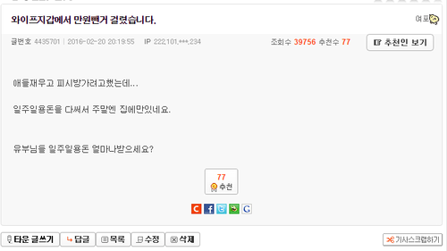 Subject   와이프지갑에서 만원뺀거 걸렸습니다..