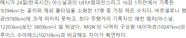 | Subject | 바르셀로나 아스날 UCL 16강 1차전 선수 뛴 거리 |