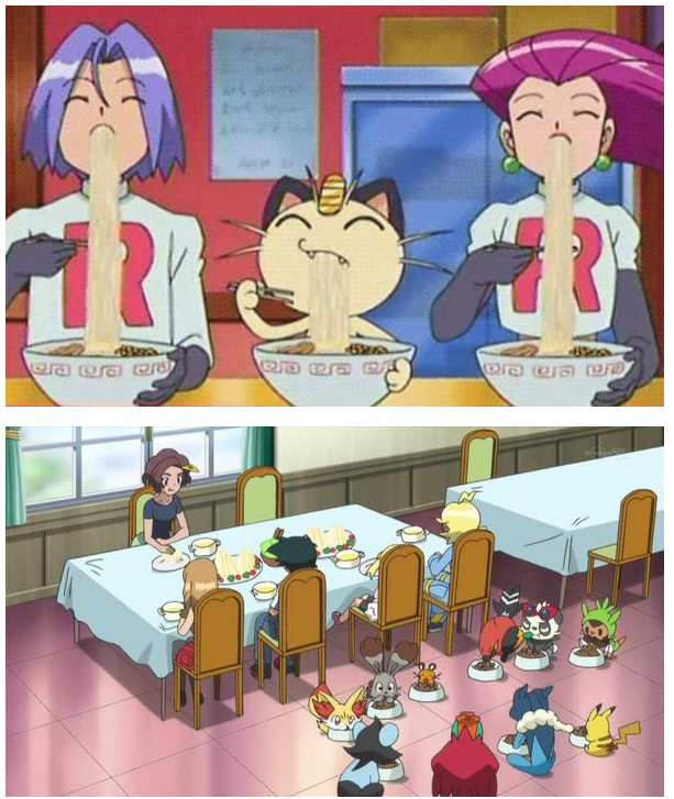 동료와 겸상을 하는 로켓단 노예와는 겸상하지 않는 지우.. 0