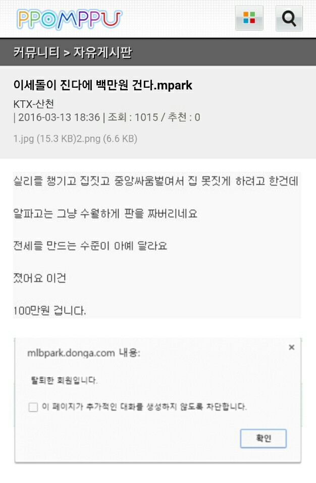 9814 백만원 겁니다!!! 1 수박이두통에게보린 16/03/16 1734 0