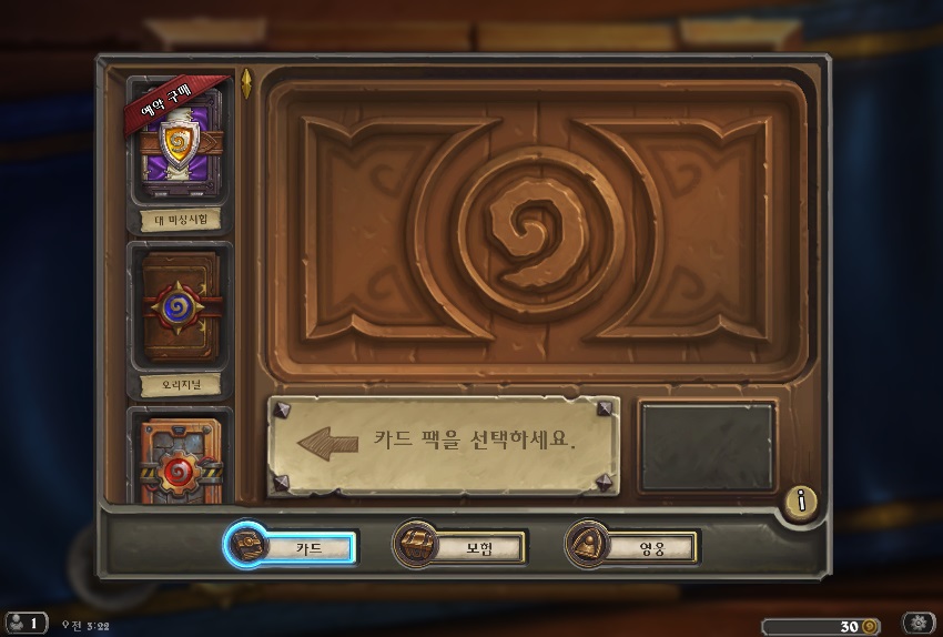 직업별로 덱인 모두 짜여진 상태인데 간혹 직업카드가 하나씩 나오고 전부 차원문 카드만 줍니다.