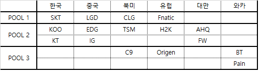 - SKT는 한국팀 + LGD/CLG/Fnatic 을 16강에서 만나지 않습니다.