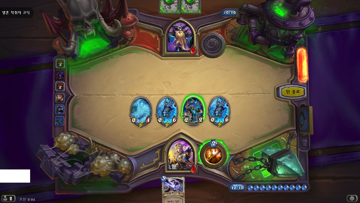 1코스트 영능이 미쳐도 단단히 미쳤다 ㅠㅠ 정말 처절한 버티기였다. 치료도 해야 하고, 상대 하수인도 제때 잡아야 하고, 유령이 되어 나에게 데미지를 퍼붓는 놈들은