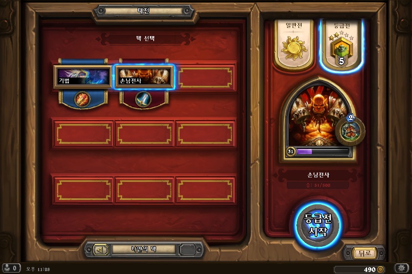 전설 보상은 카드 뒷면뿐이란 말에 전설에도 목을 메지 않았거든요. 3일에 한번 접속해서 일퀘만 싹 클리어하는 식으로 말이죠. 그리고 고블린과 노움이 추가되기전까지는 더이상 랭크게임은 하지 않았습니다. 그리고 지금까지 전설카드 뒷면이 없습니다. ㅠ_ㅠ