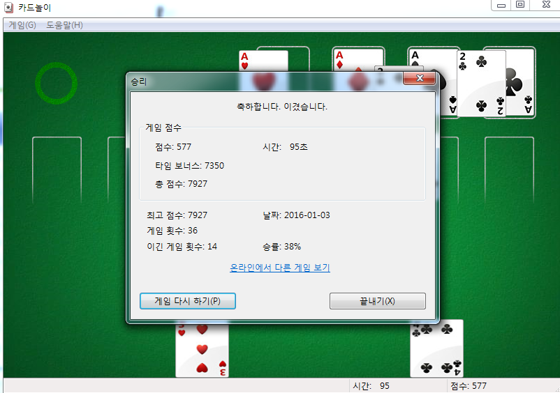 헤헤 윈도우 카드놀이 95초 찍었어요 '▽')8