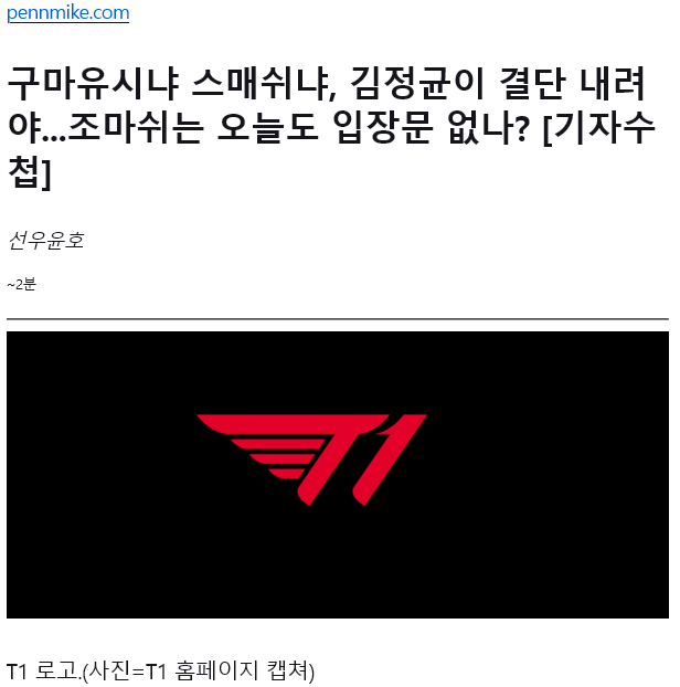 - 구마유시 팬덤에서 페이커 위상을 구마유시에게 계승시키고 싶어하는 거야 어제오늘 일이 아니었고 가만 보면 페이커 팬 뿐만 아니라 다른 팬들 입장에서는 선 넘는 행동들을 할 때도 있는데, 저는 아직은 그냥 철없는 어린아이들의 땡깡 같아 보입니다. 애초에 그런다고 계승이 가능한 자리가 아니고 지금처럼 했다가는 명가의 위상을 훼손시키지나 않으면 다행이지요.