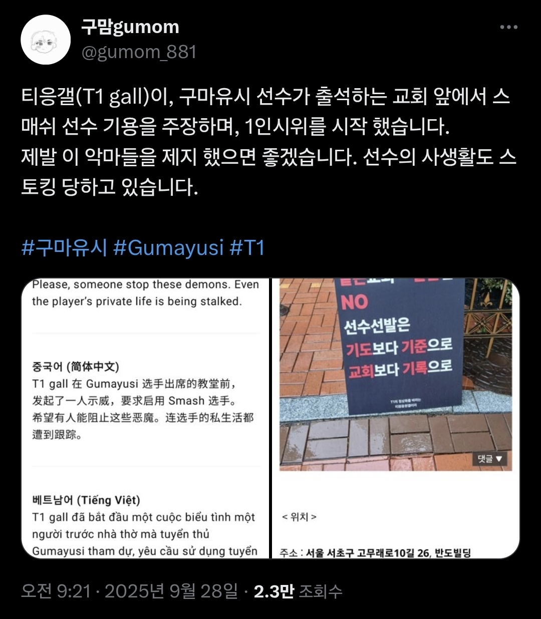 교회 앞은 좀 선넘은거 아닌지... 개인 사생활일텐데...