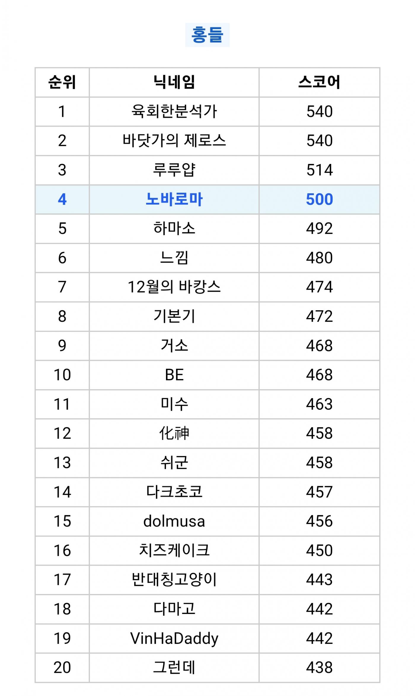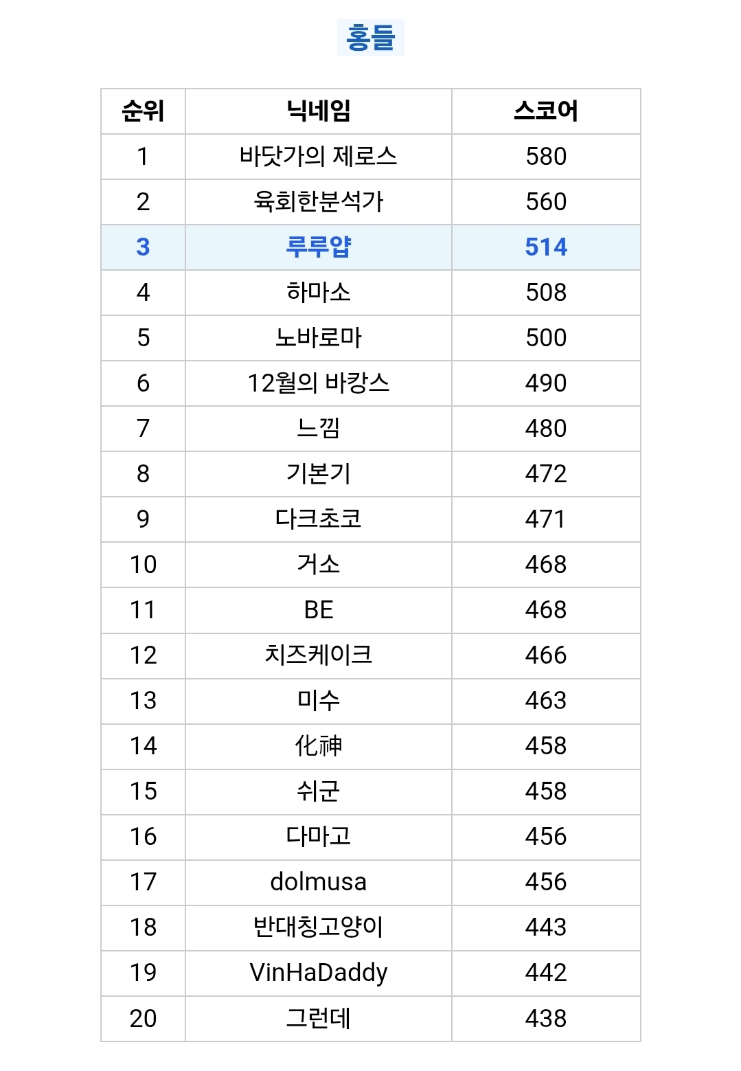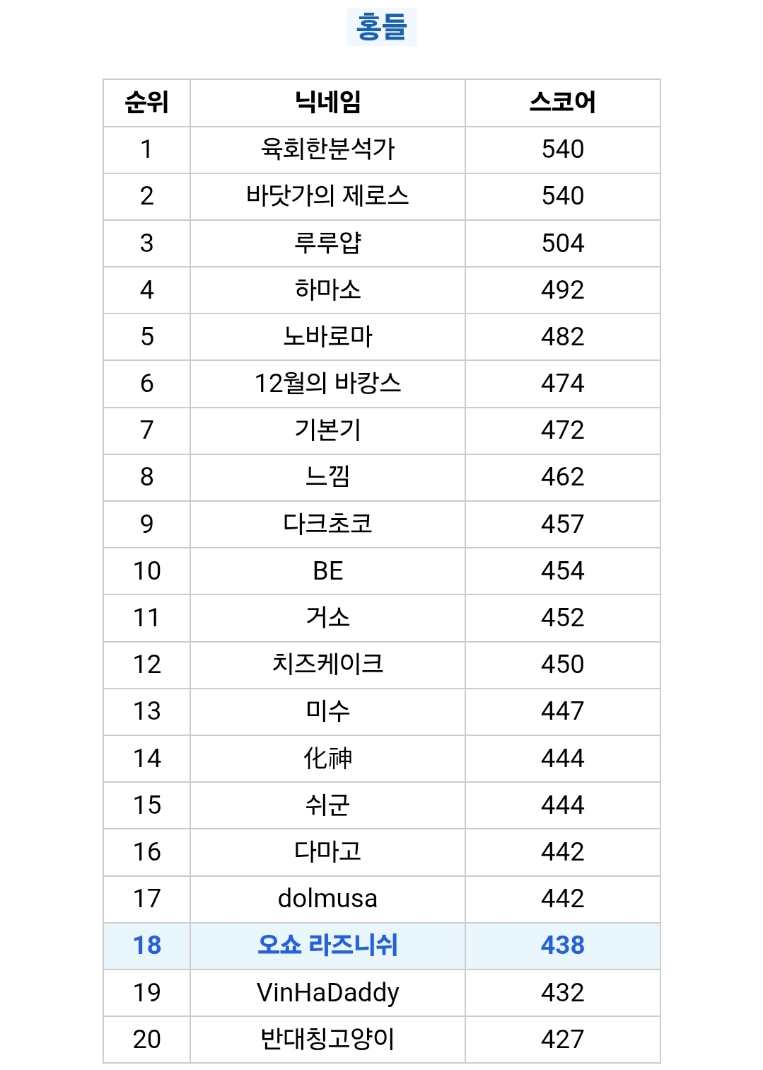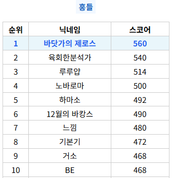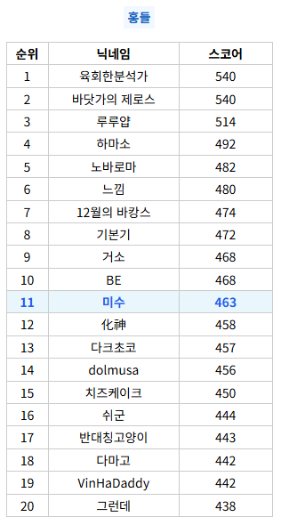 힌트를 종종 봤지만 첨으로 순위권 해보네요