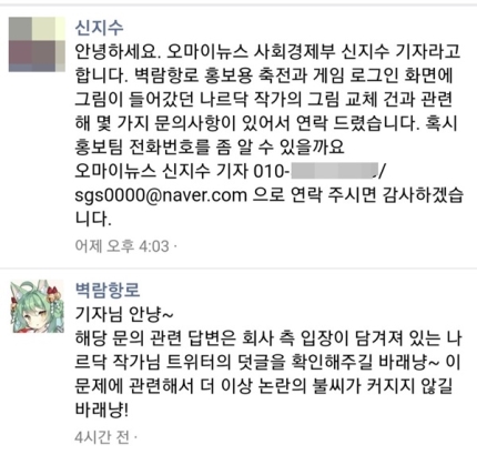 기사 내용은 어쨌거나 벽람항로 트위터는 유저들을 상대하는 컨셉 계정인데 홈페이지에 나와 있는 메일 주소 두고 왜 컨셉 계정에 요청 했는지 좀 의문입니다.