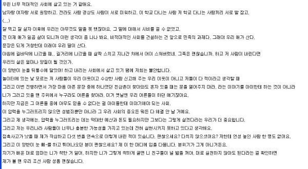 혐오가 일상적으로 이루어지면 협동,화합 하려고 하기보다는 우선적으로 적대적이 될 수밖에 없는데..