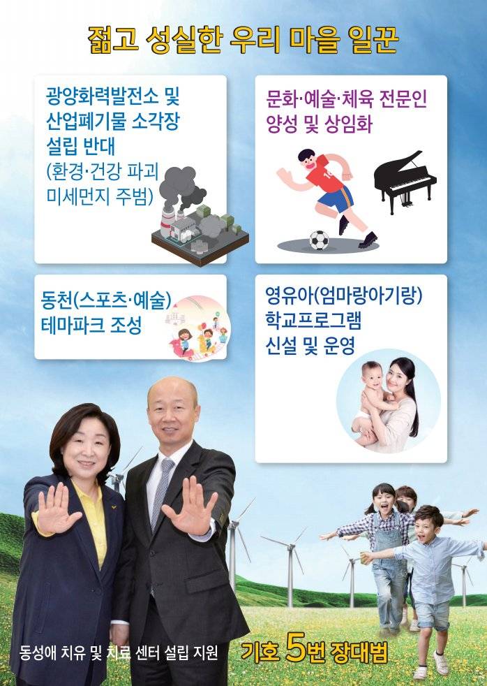 장 후보의 공보물을 보면, 장 후보는 현재 전남 광양 예찬교회 집사를 맡고 있고, 정의당 상가임대차보호법 개정추진 부단장, 전남 광양 영웅 아동센터 및 덕진어린이집 운영위원장 등을 맡고 있다. 장 후보는 2016년 20대 총선에서 전남 광양시·곡성군·구례군 지역구에서 무소속 후보로 출마했다가 낙선했을 때도 ‘동성애(에이즈, 각종 질병의 원인) 예방’을 공약으로 내걸었던 적이 있다.