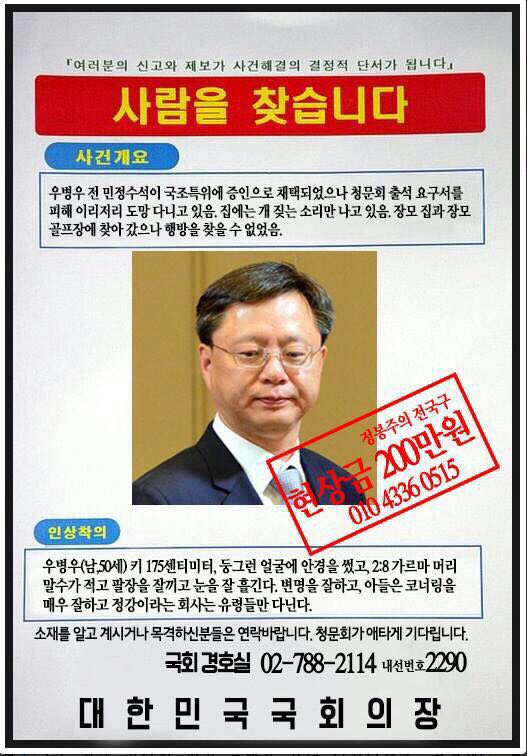 1111 정치정봉주 “우병우 공개수배 현상금 2백만원”…SNS “네티즌수사대 가동” 2 Credit 16/12/08 3385 0