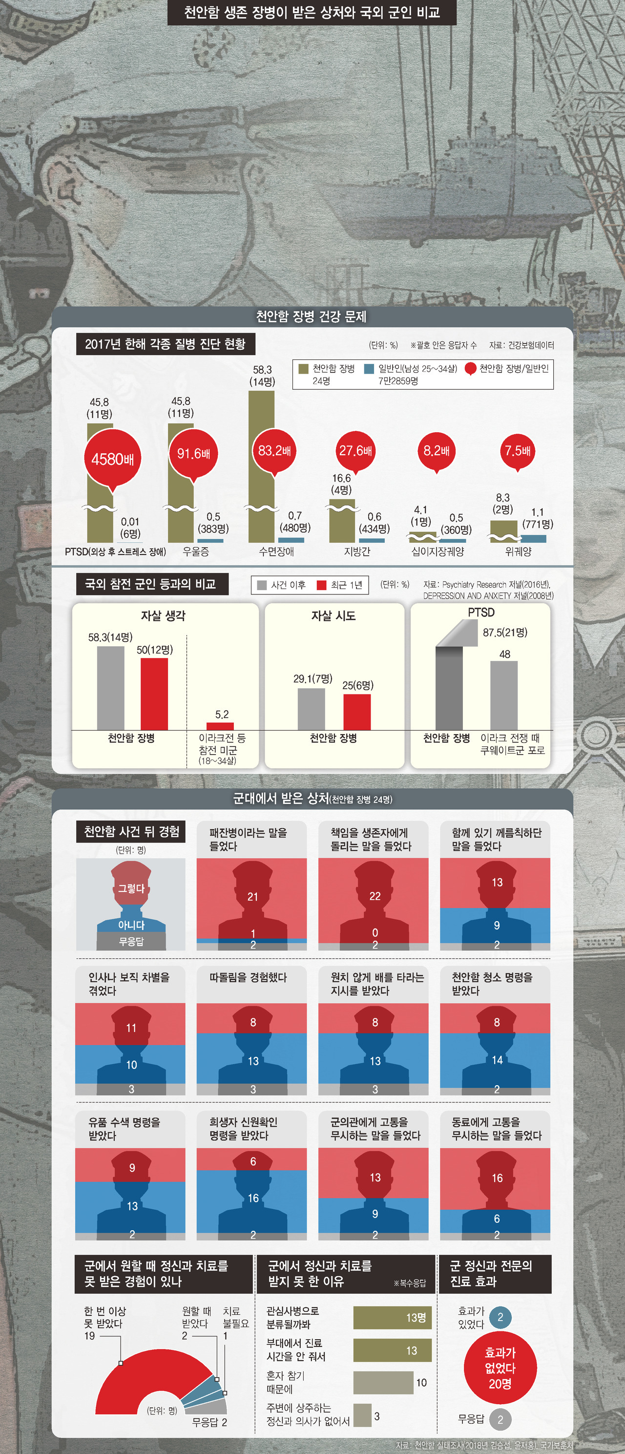 <한겨레> 천안함 생존장병 PTSD, 이라크전 미군의 7배…“술·약 없인 잠 못자”