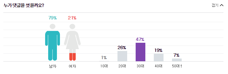 http://news.kmib.co.kr/article/view.asp?arcid=0012540432 https://news.naver.com/main/read.nhn?mode=LSD&mid=sec&sid1=102&oid=005&aid=0001116309 댓글 연령층 비율이 그것을 증-명 0