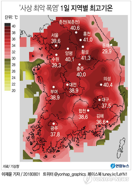 사회홍천 41.0도 서울 39.6도..폭염 새 역사, 곳곳 40도 훌쩍 2 |