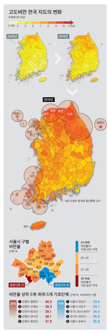 | Subject | 강원도 철원·인제 비만율 1·2위 … 도시보다 더 뚱뚱한 농촌, 도대체 왜? |