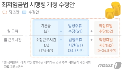 정부가 최저임금 시급 산정기준에 주휴시간을 포함하되, 약정휴일은 산정기준에서 제외하는 최저임금법 시행령 개정안의 '수정안'을 내놨지만 여전히 논란은 가시지 않은 모양새다.