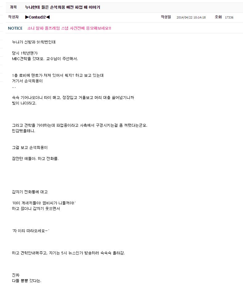 https://www.yna.co.kr/view/AKR20190124167600004?section=news A씨는 "손 대표이사에 관한 제보를 받고 취재를 하면서 입장을 듣기 위해 그를 수차례 만난 적 있다"며 "사건 당일 손 대표이사가 저에게 JTBC 일자리를 제안했으며, 이를 거절했더니 폭행했다"고 주장했다. 이건 또 뭔가요? 다이나믹 코리아 ㅇㅅㅇ 0
