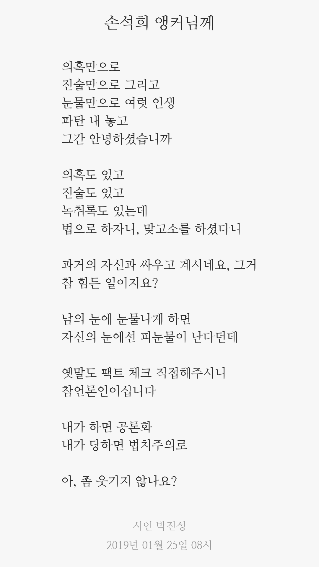 14446 방송/연예박진성 시인, 폭행 논란 손석희에게 보내는 시 공개 102 The xian 19/01/25 11568 5