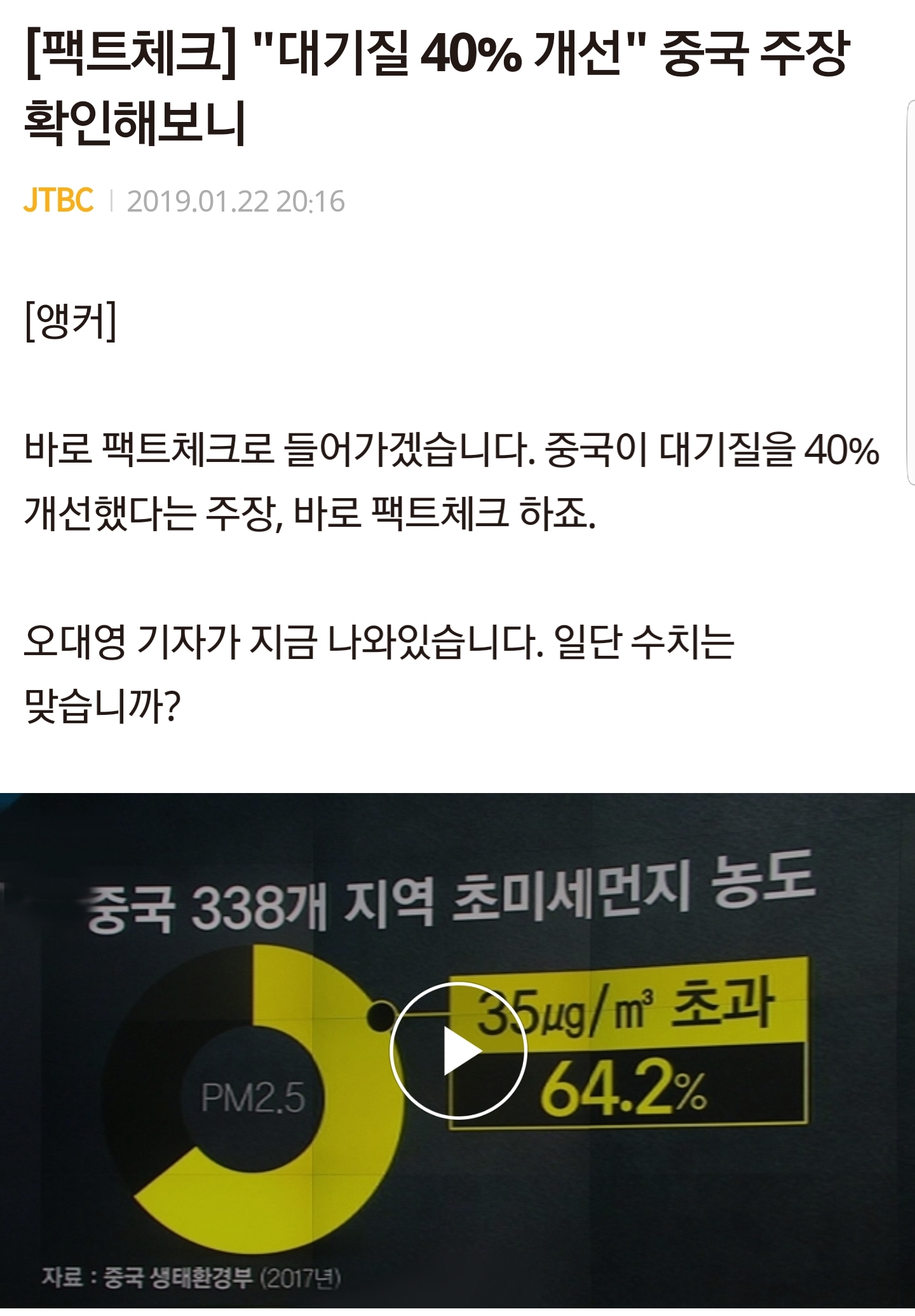 | Subject | [팩트체크] "대기질 40% 개선" 중국 주장 확인해보니 |
