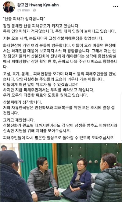 15086 정치황교안 "산불 진화 완료 때까지 정쟁 멈추자"(종합) 16 The xian 19/04/05 4327 5